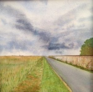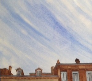 Aquarelles Carol Madjer Ciels 2020 Bouglini_20x20 Par dessus le toit_22,5×20,5 Rezé_18x24 retour parcours exposition